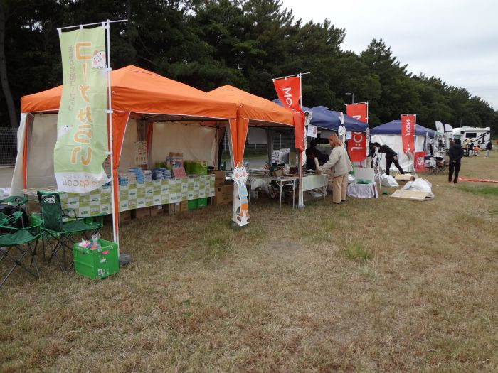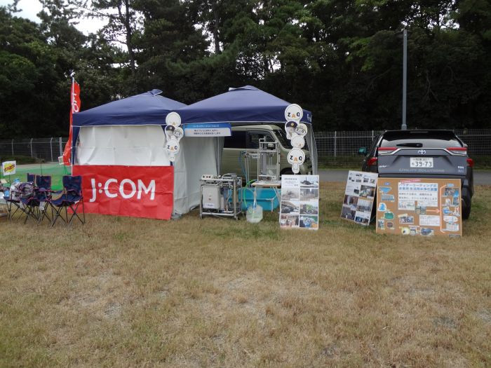 私たちのイベントはその横で、防災×キャンプ的なコラボレーションで行われ、J:COMさんの防災減災ブースの一角に出させていただきました。