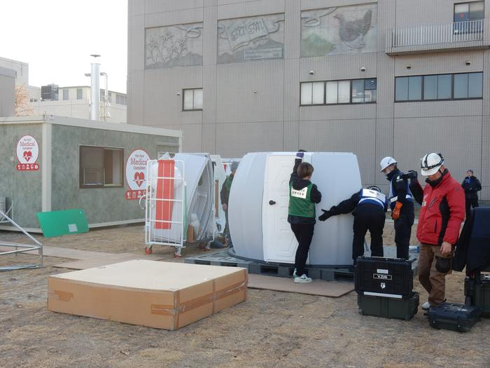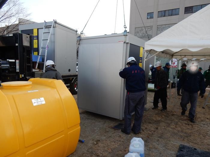 ↓設営中(コンテナ型ユニバーサルデザインのトイレ)