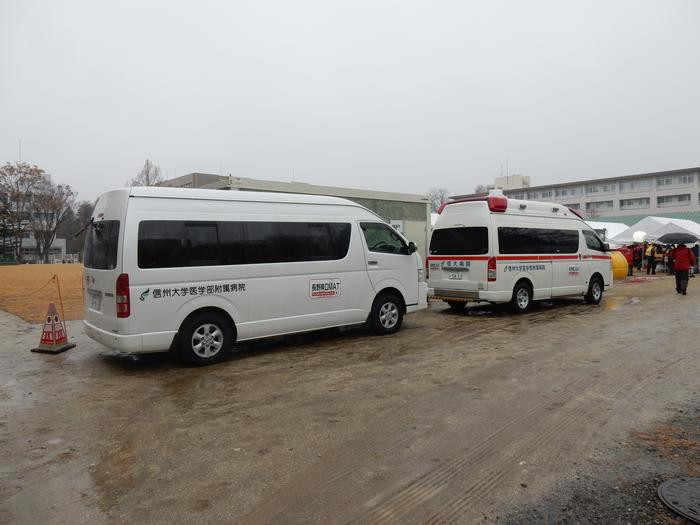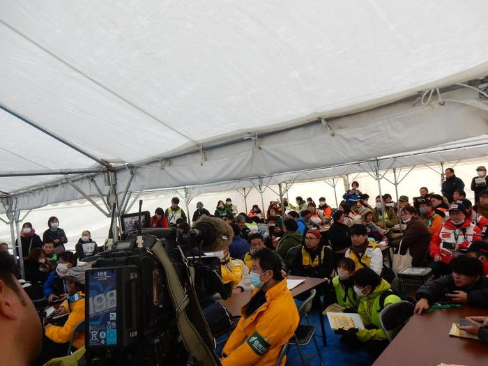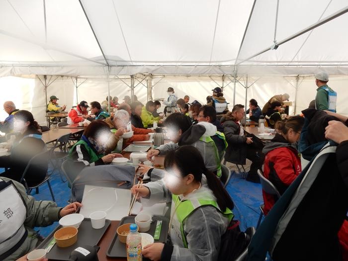 ・13日(土)朝、伊那市の備蓄基地から隊列を組んで資機材を支援拠点に搬送後、夕方までに設置作業を完了