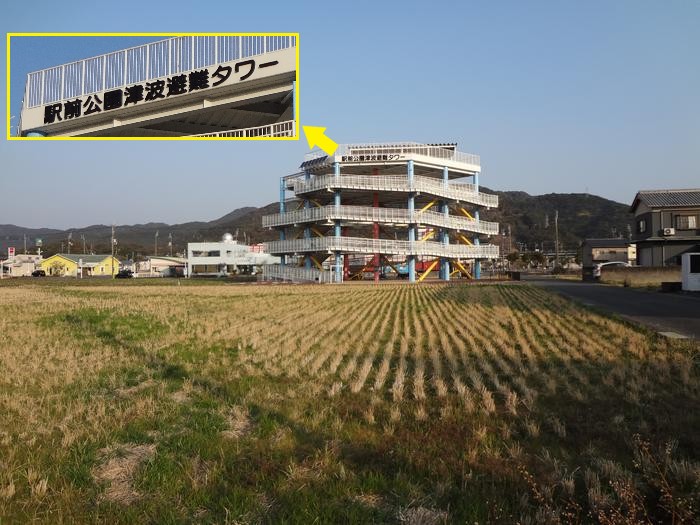 駅の前には「津波避難タワー」があります。体験のために登ってみました。