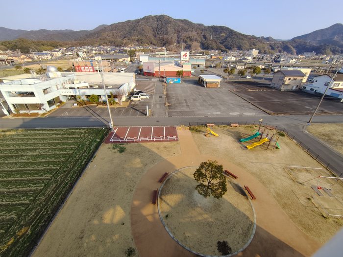 ↓上層からの眺め(中央が土佐くろしお鉄道・宿毛駅)