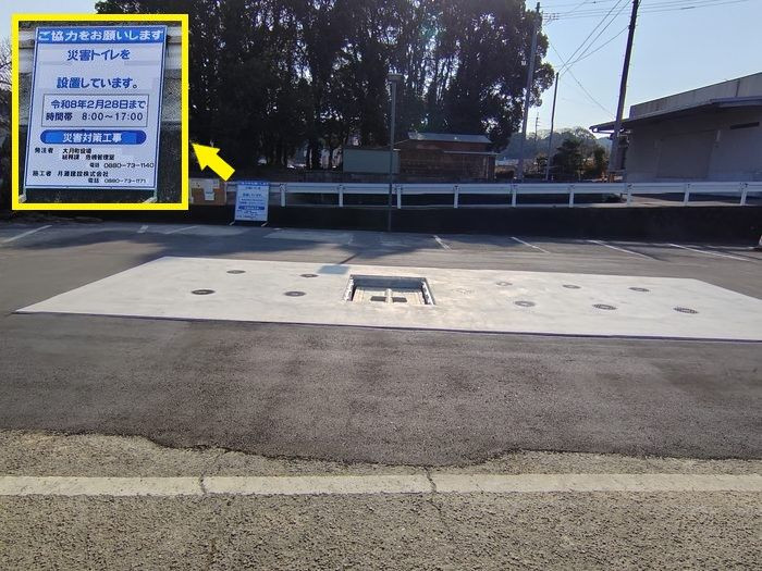 コンクリートの下には大きなタンクがあり、通常は扉からマンホールトイレなどの備蓄品を収納しています。