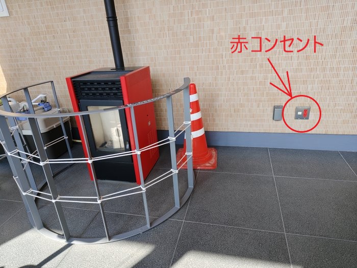 ↓庁内には、非常用の暖房器具や”赤コンセント”もありました!