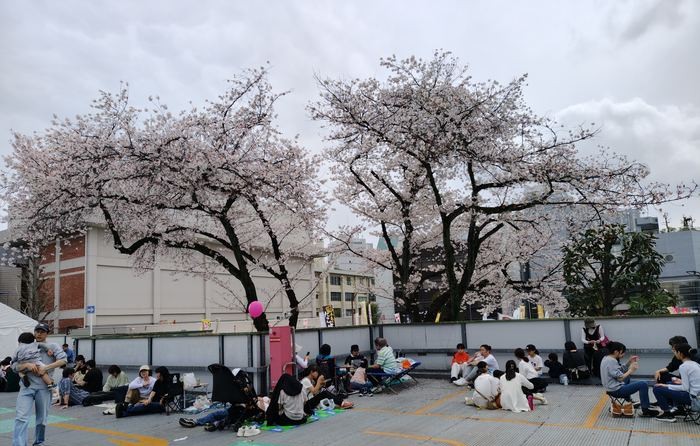 桜並木のストリートは、多くのひとで身動きもできないほど。