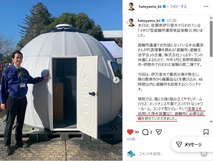 先々週開催のイタリア式避難所実証@佐賀での1コマです。